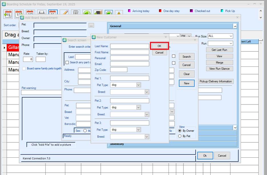Hit OK and finish adding the booking.  KC will create a record for this client and pet(s).