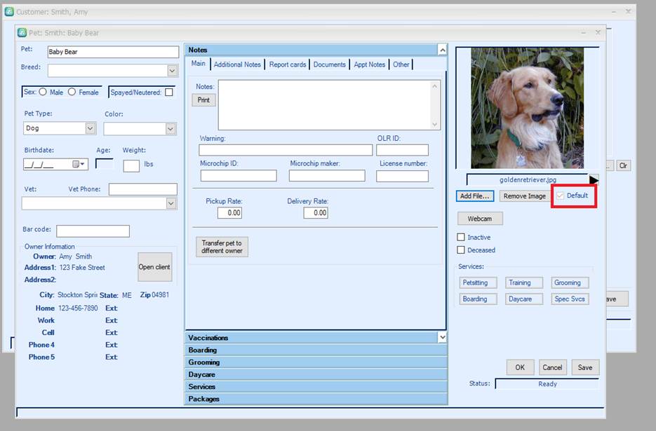 You can add multiple pictures to the pet record.