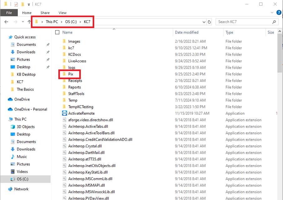 KC will take you to the Pix folder. Double click on
