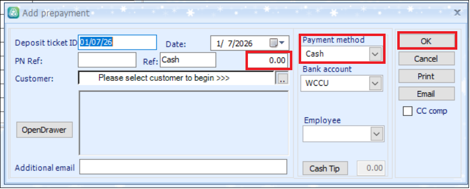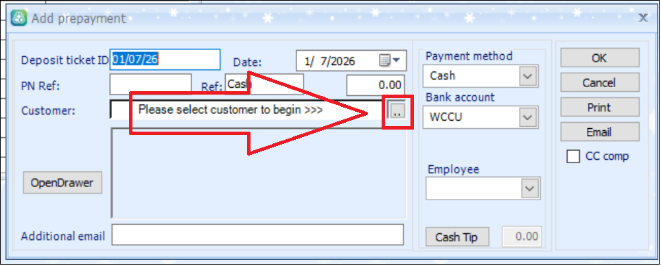 After clicking Prepayment/Credit, you will be prompted to search for and select the customer.