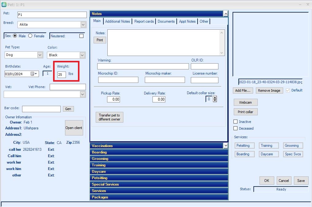 You can set KC to charge by weight for boarding. You also have the option to set multipet rates.