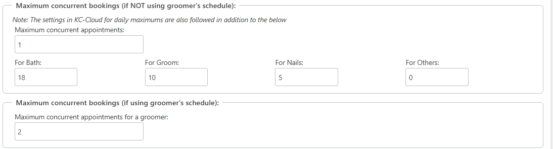 Max bookings per timeslot (if not using groomer's schedule)