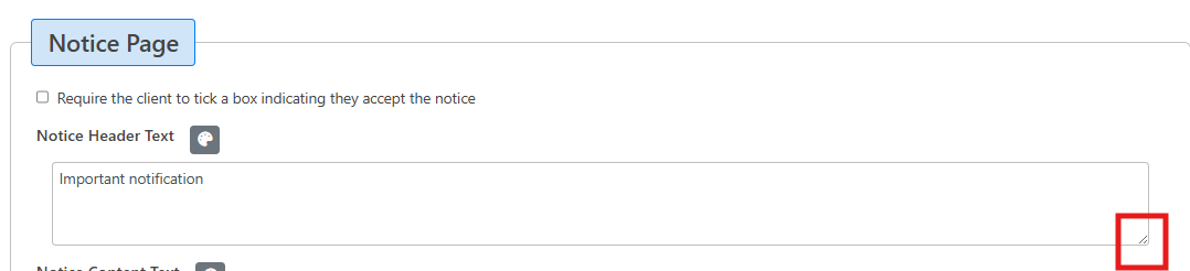 TIP! Did you know that when you see the diagonal lines in the bottom right of a text field you can click and drag to expand the size? This helps when you have a lot of text to enter!