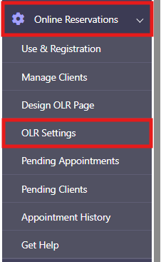 Login to your Live Access system using your own Live Access URL and admin credentials. Choose Online Reservations from the left hand menu and click on the OLR Settings.