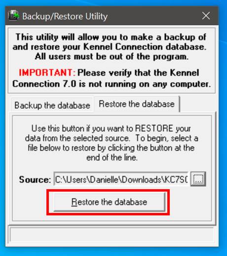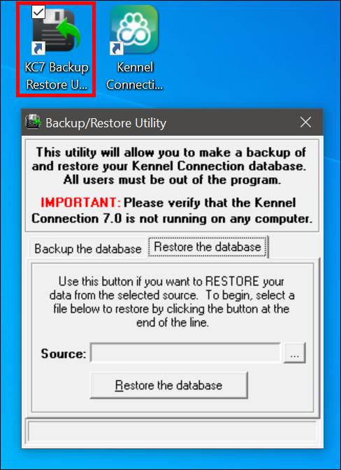 applications. KC7 is a SQL database and SQL databases can only be backed