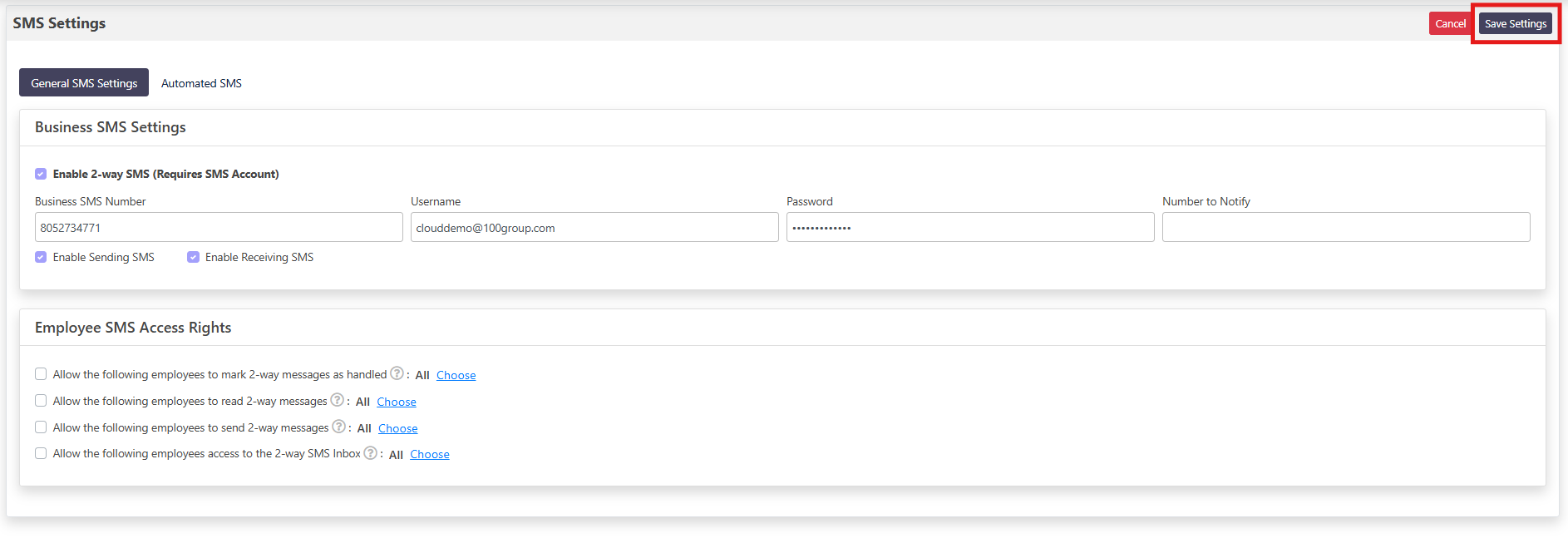 Once you are able to successfully save the SMS Settings page, the SMS messages will send.